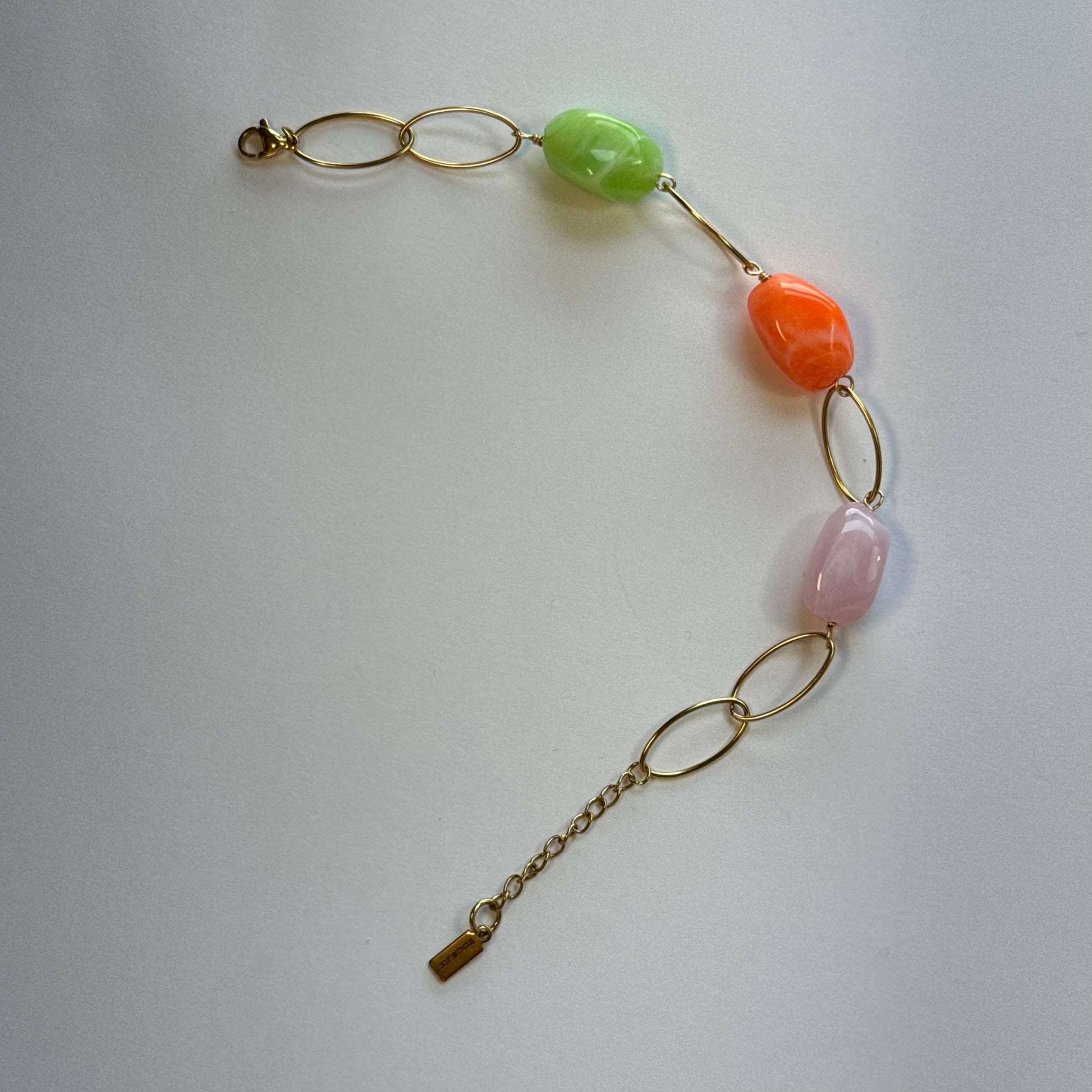 🎨 Color: acero dorado con toques en verde, rosa y naranja